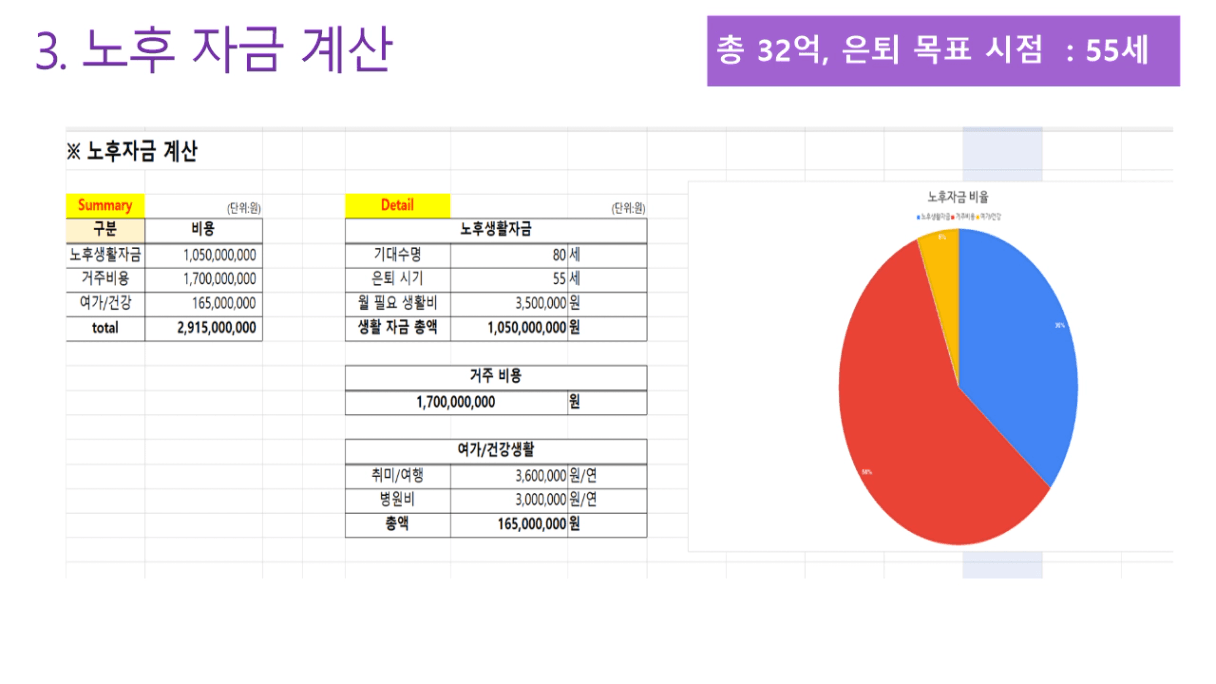 우선 노후 필요자금으로 총 32억이 필요했구요
