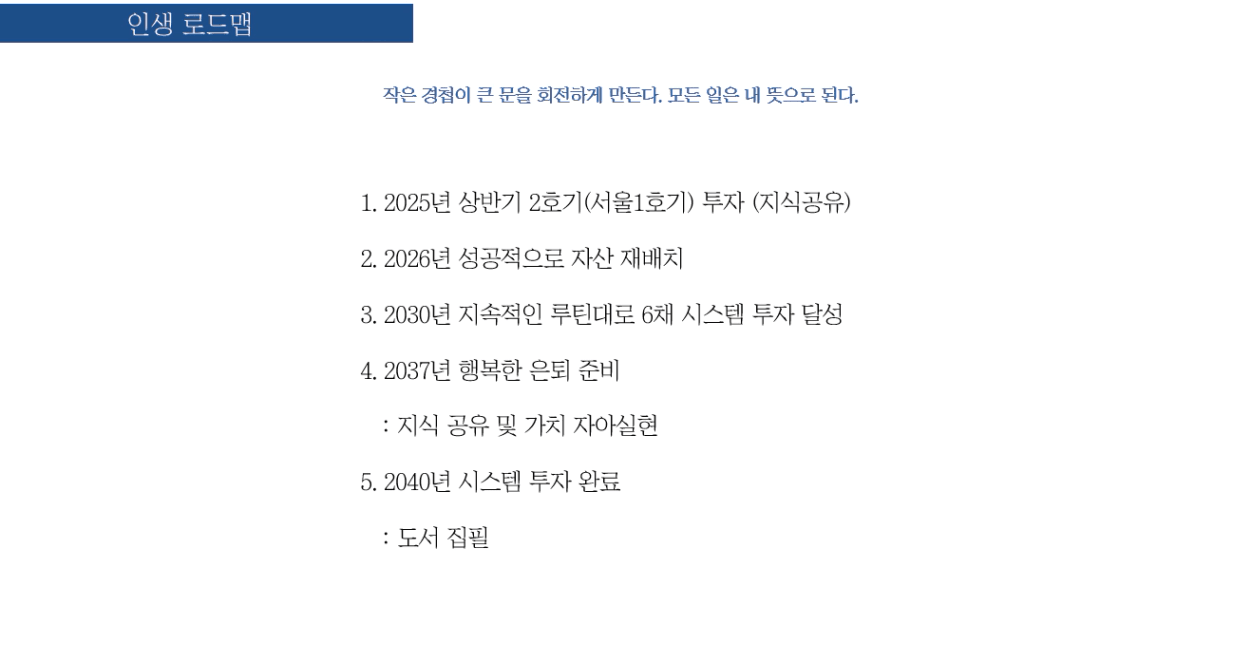 한가지 분야에 정착하여 시스템 투자 달성을 위해 몰입한다.
