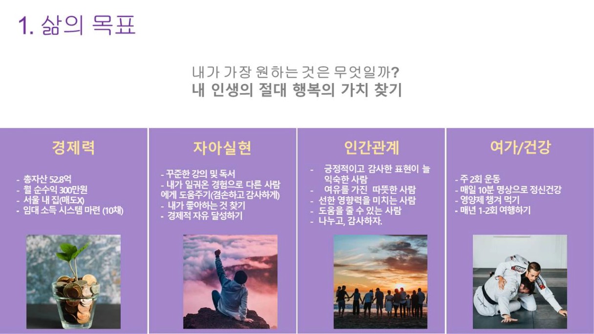 탈피님 비전보드 작성 넘 고생하셨습니다. 흐릿하던 목표에서 명확해지면 동기도 더 생기고 한발한발 나아가는데 힘이 생기는 것 같아요. 비전보드 모두 이뤄가시길 응원할게여!!홧팅!!