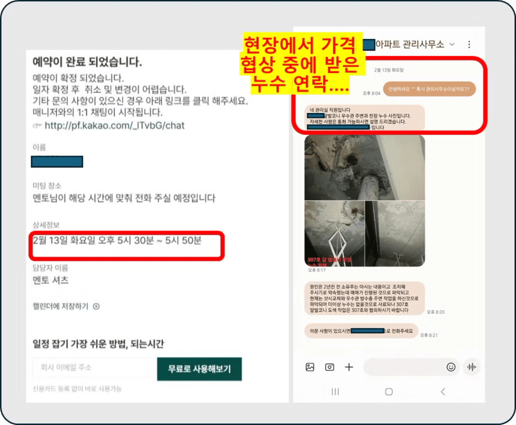 “가격 협상을 하는 중에 받은 누수 연락”