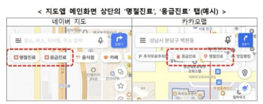 ‘명절진료’, ‘응급진료’ 탭