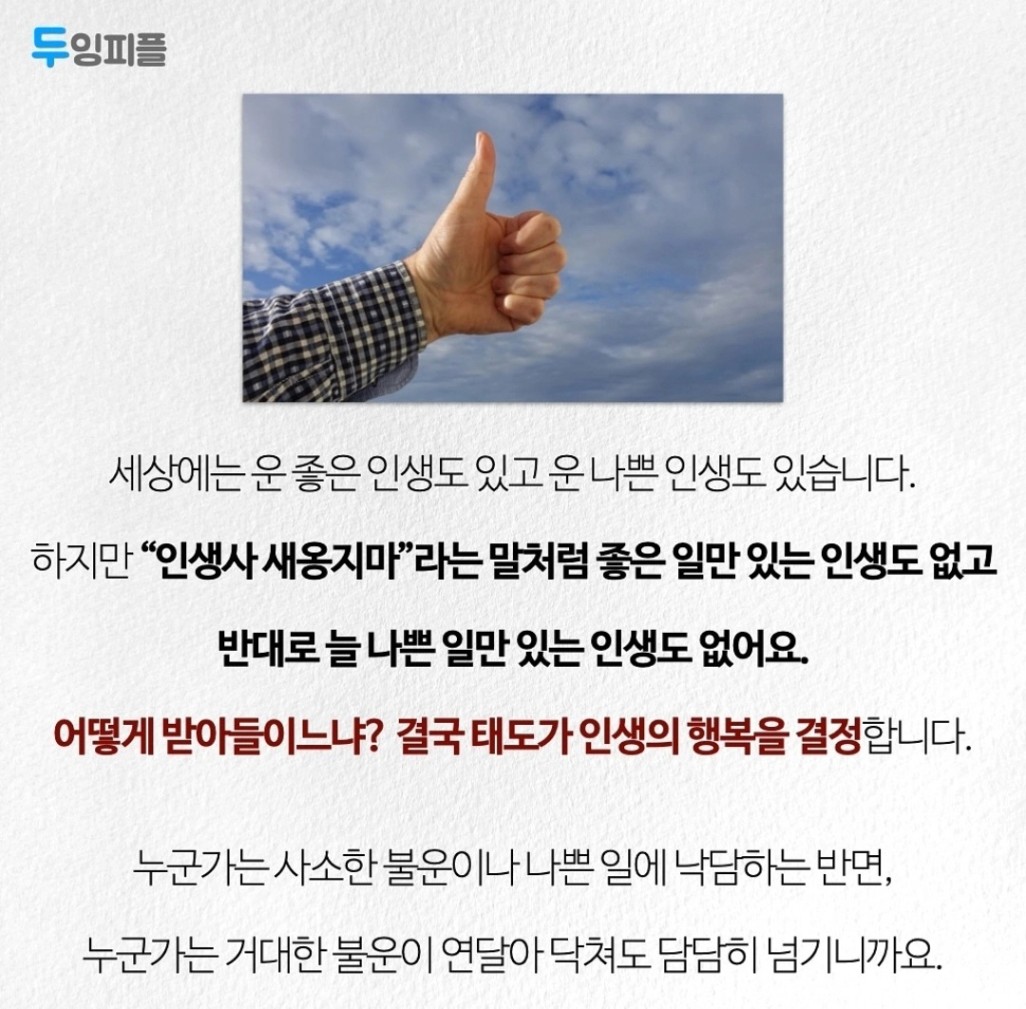 지금 당장은 이러한 관점이 큰 차이가 있을까 생각이 들기도 하지만 관점이 쌓여서 나의 행복을 결정하는 중요한 부분이라는 생각이 드네요~