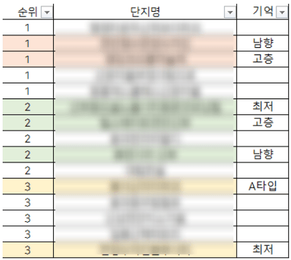 동,층,향 등의 선호도가