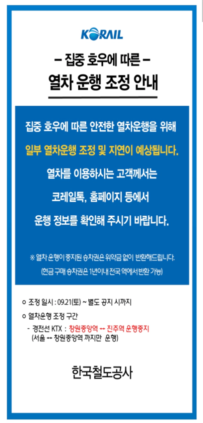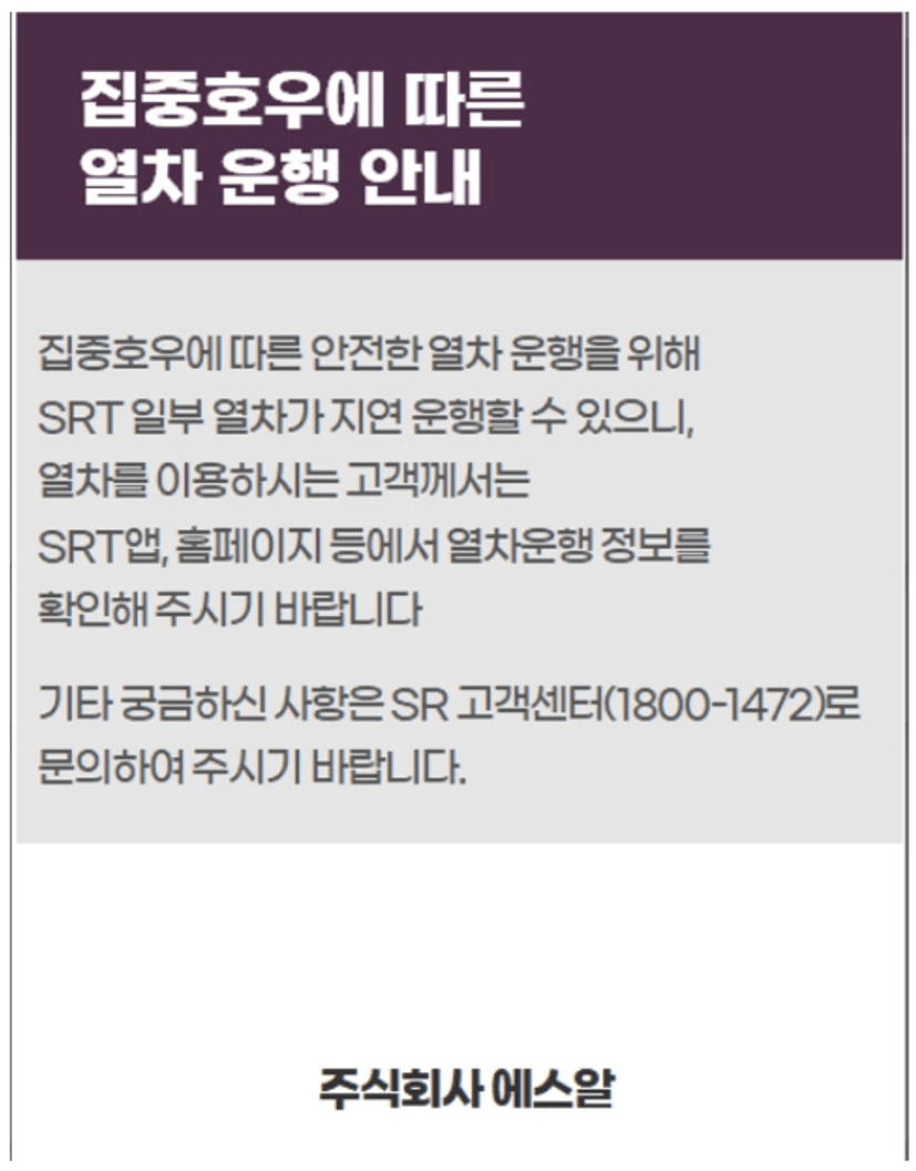 안타깝지만 자연재해로 인한 열차지연은
