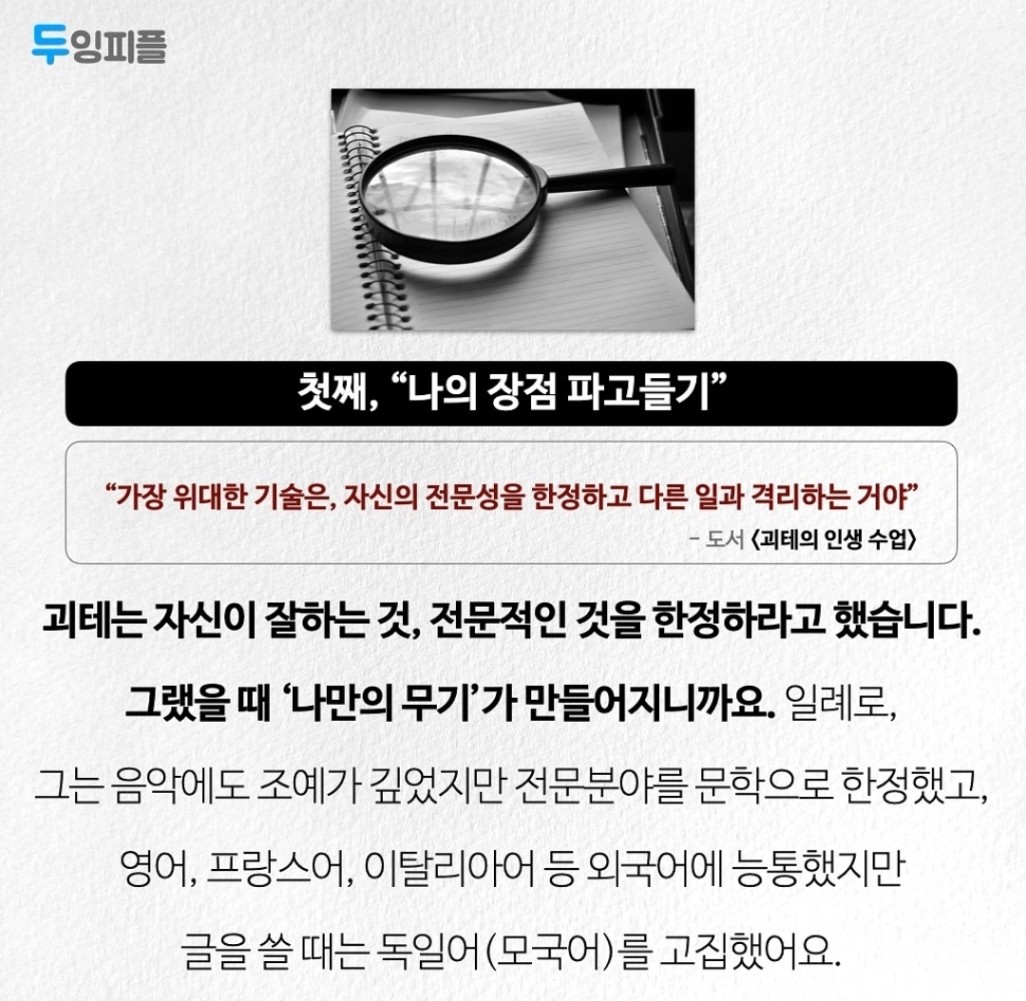 보통 한 가지 일에 전문가가 된다는 게 그 과정 속에 지루함도 있을 수 있고 또 포기도 하고 싶을 때가 많을테니까요.