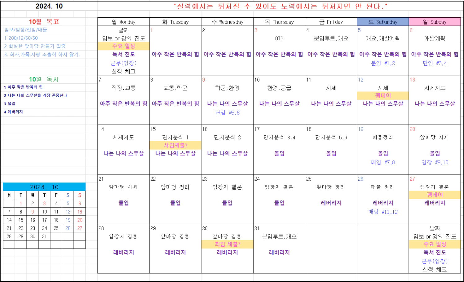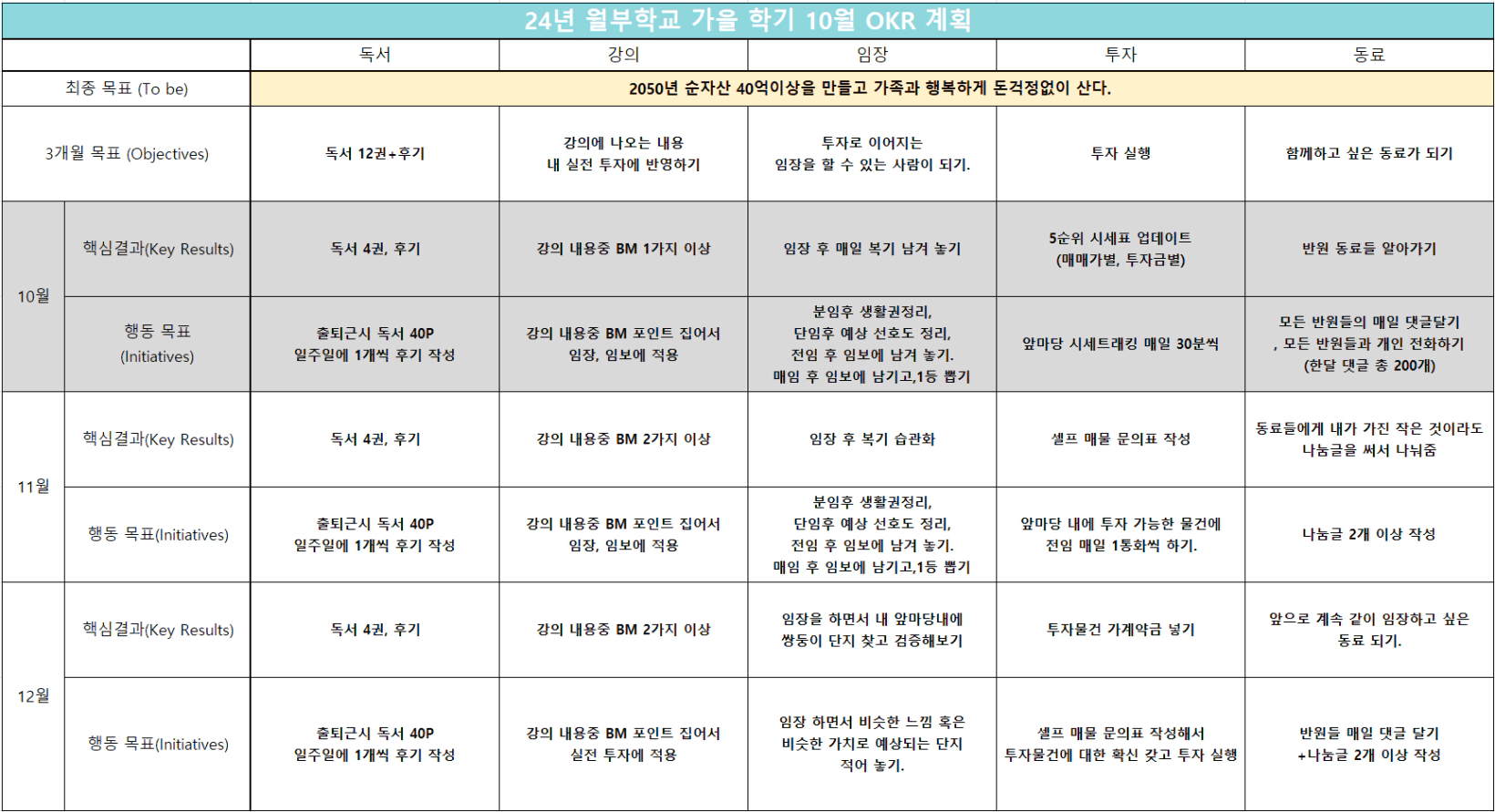 [2024년 10월(가을학기) OKR 계획 및 원씽 캘린더]