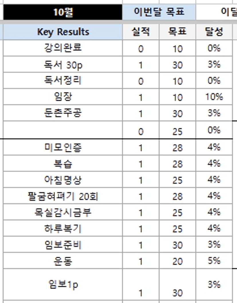 그리고 목표치를 낮춰봤자 수행률이 올라가는게 아니더라.ㅋㅋ