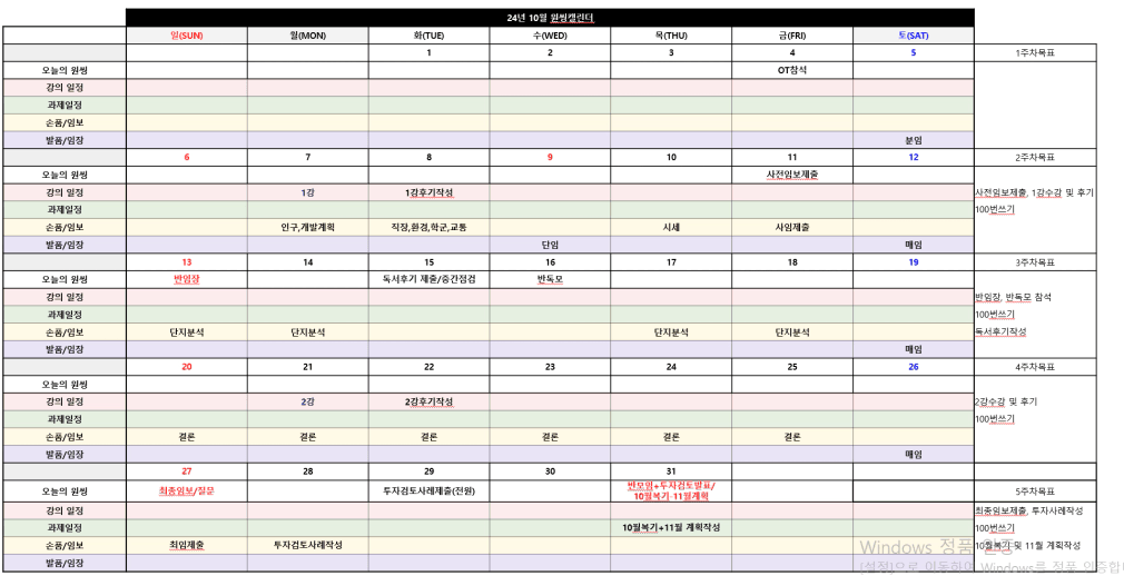 [이외 계획 및 목표] 첫 월부학교 일정참석 및 과제 빼먹지 않고 다하기