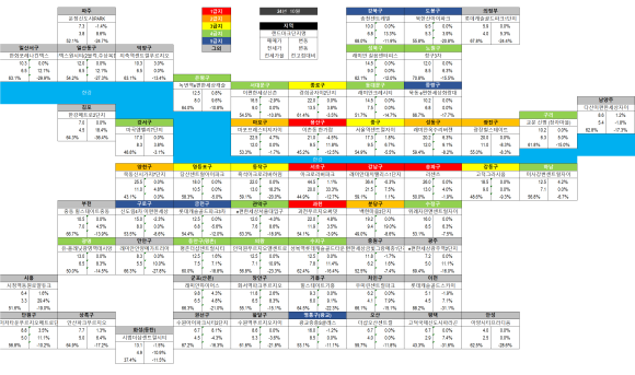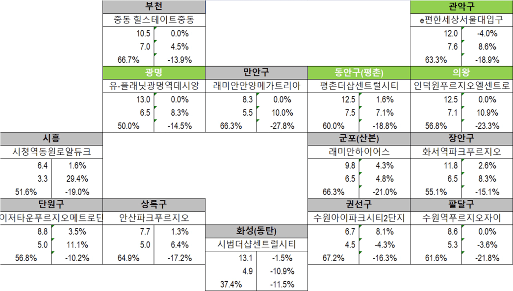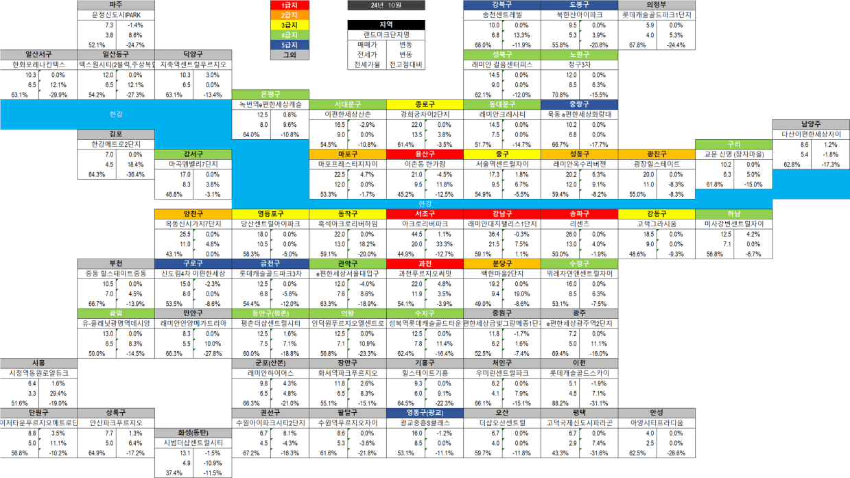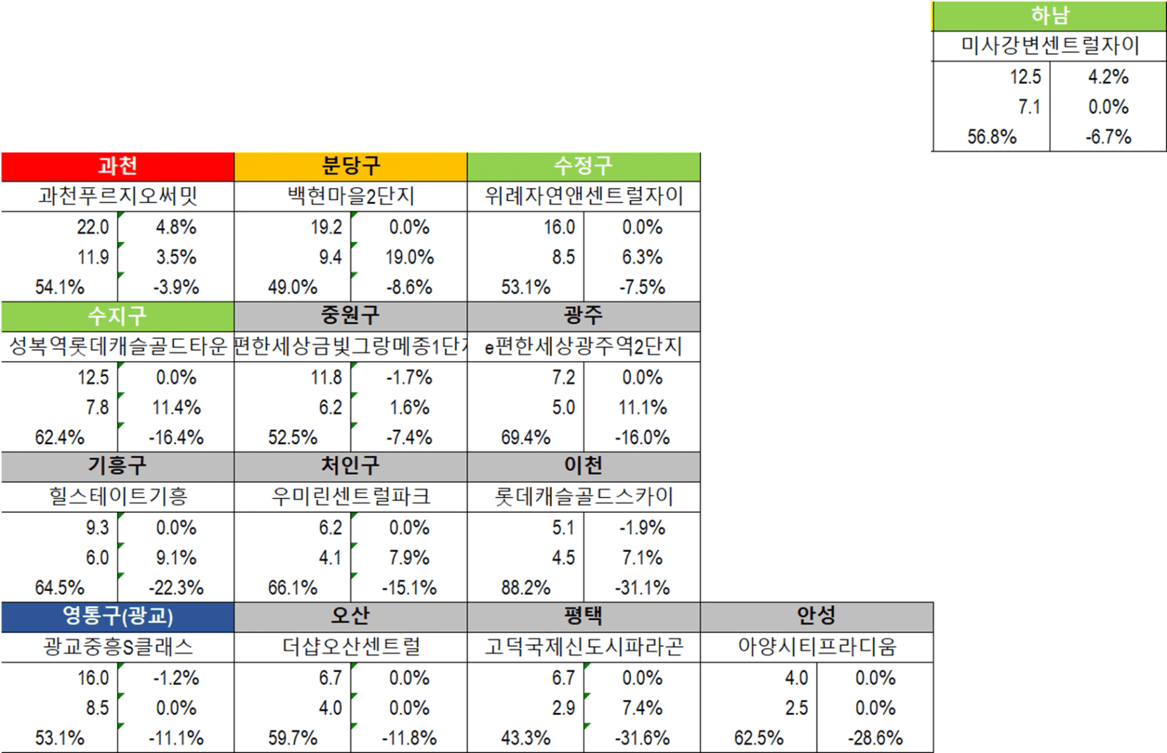 - 하락 폭이 큰 지역은  상승하는 분위기