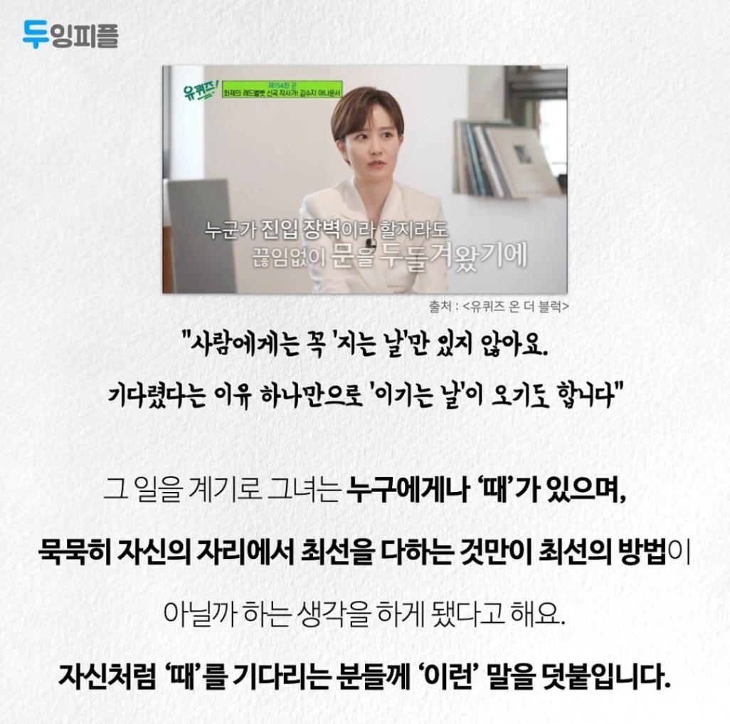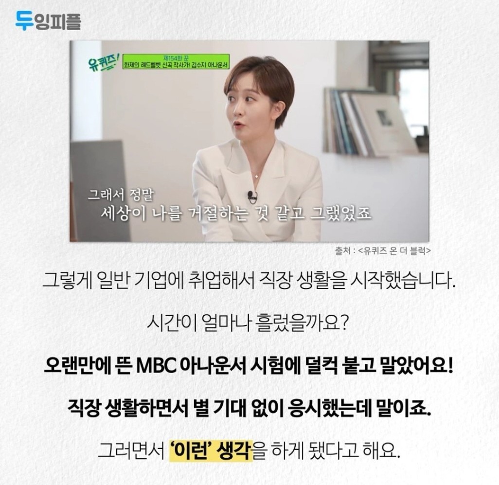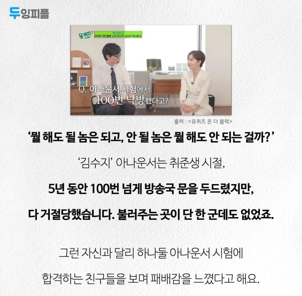 아나운서 시험에 매번 낙방 하다가 ‘때’가 되서 합격했다는 말이 크게 와닿는데요