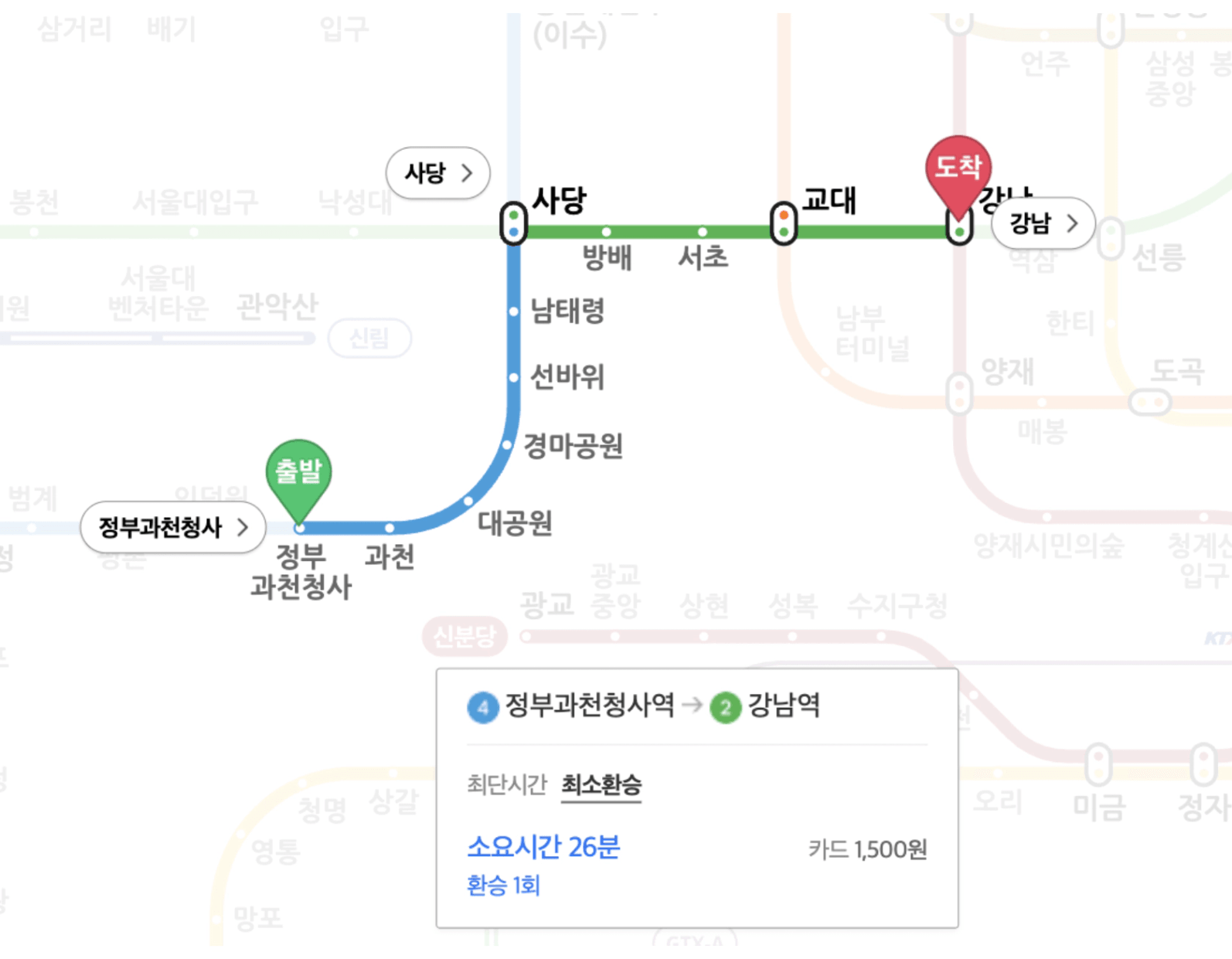 강남역까지 30분 내로