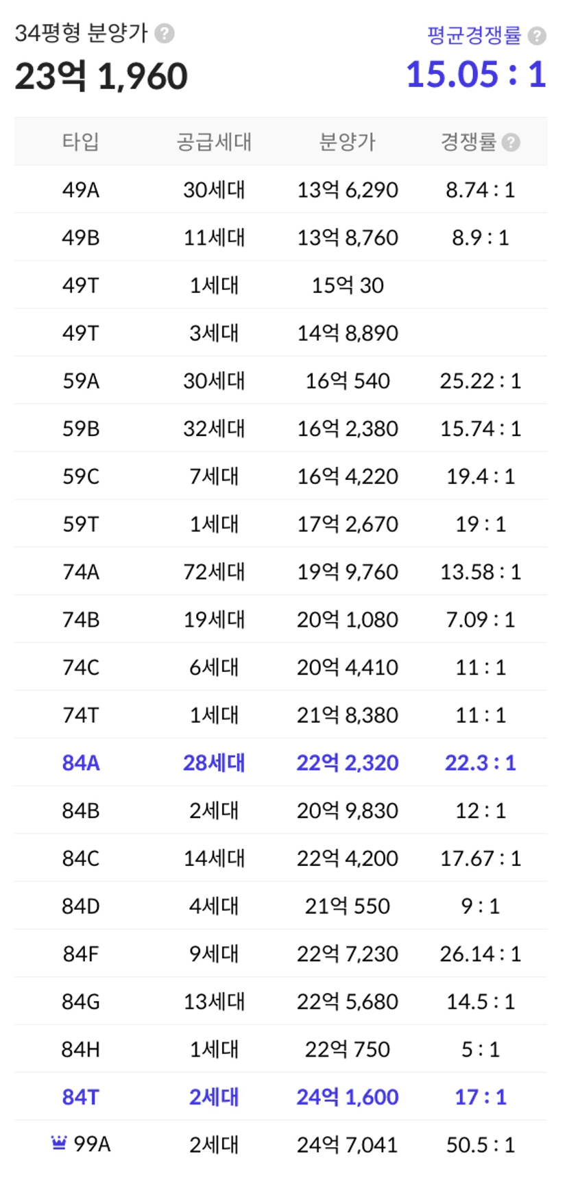 전용 84 타입 22억