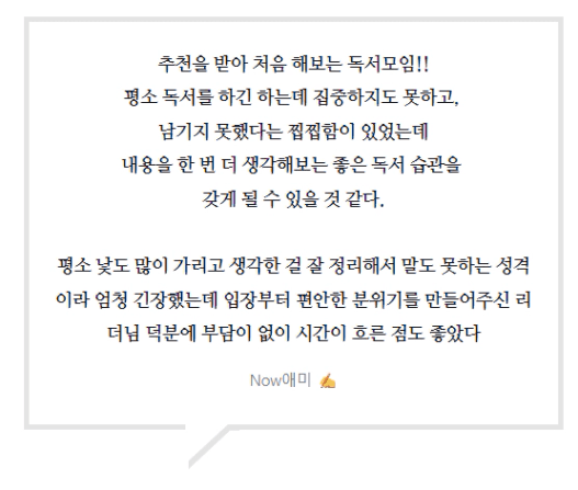 타 참여자 분들의 독서모임에 지장을 주기에