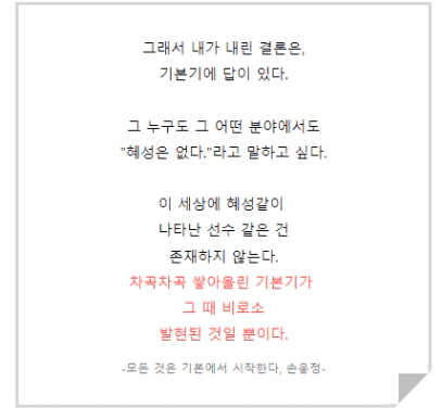 요행을 부리지 않고 '기본기'를 채워갈 때