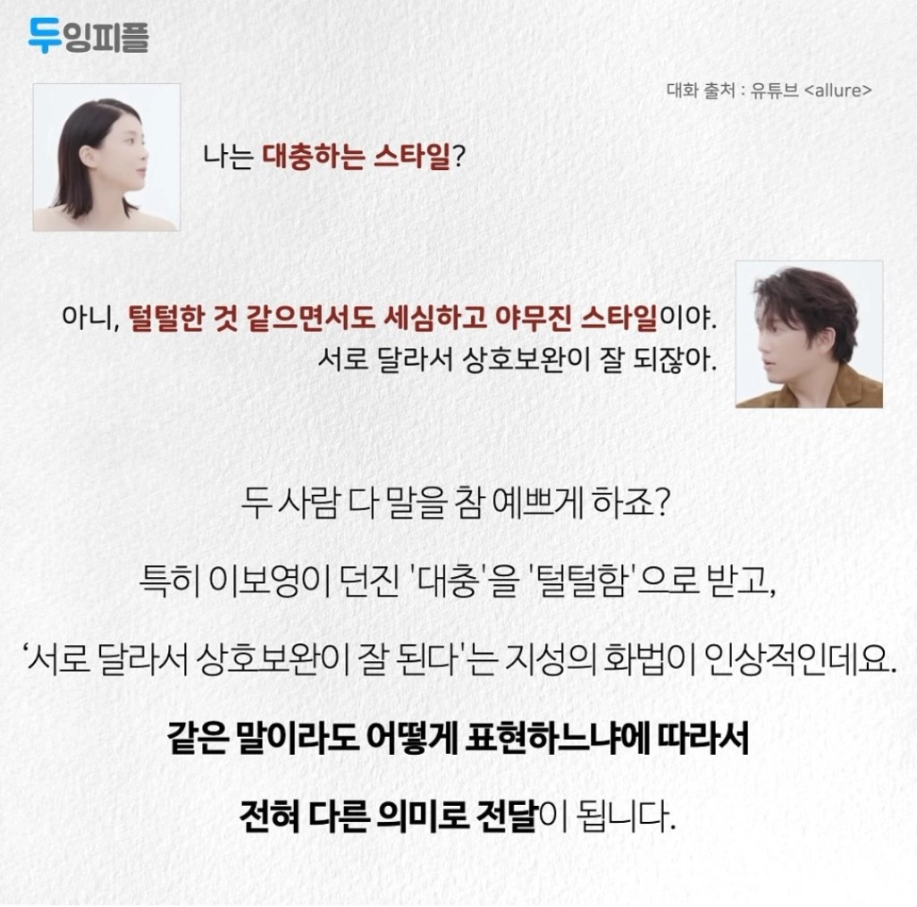 대화가 어떠냐에 따라 상대방의 기분도 마음도 바꿀 수 있는 큰 무기가 되기도 한 것 같아요 ~