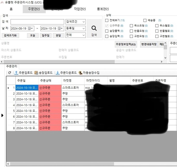목요일까지 220개 등록하고 첫주문 받았습니다