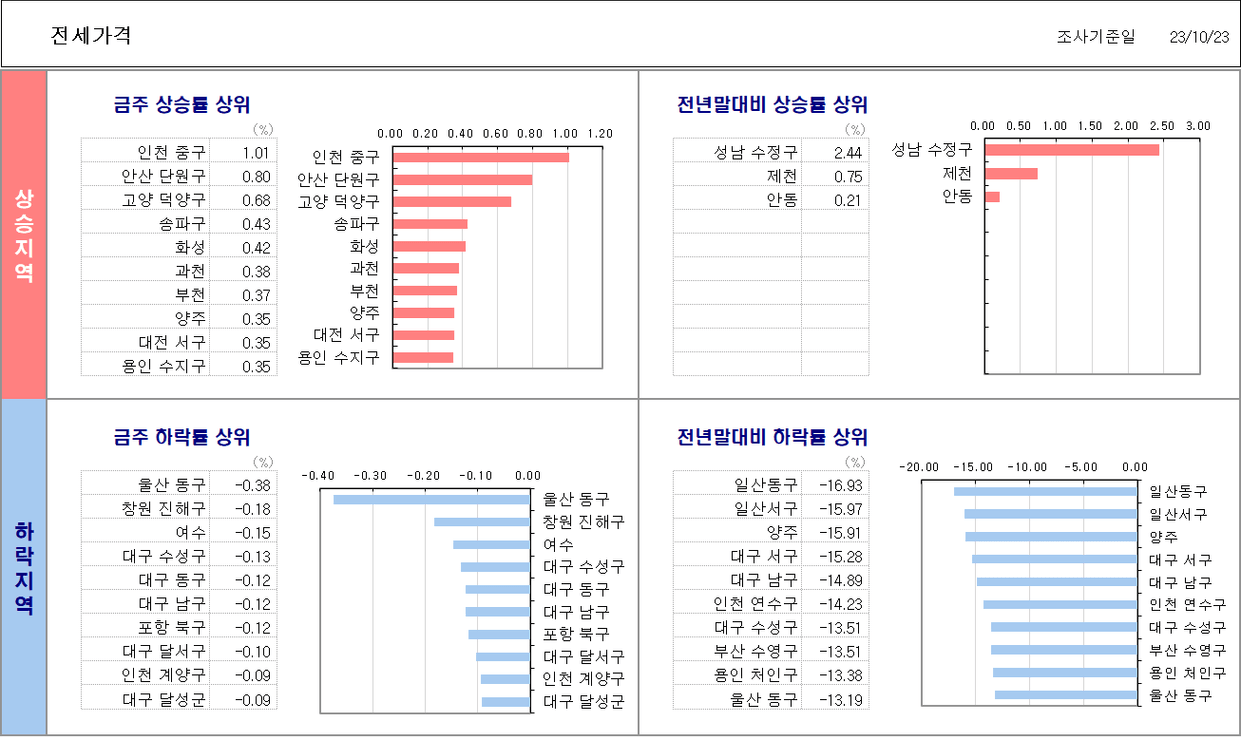 10월 4주차 주택시장동향 조사결과입니다