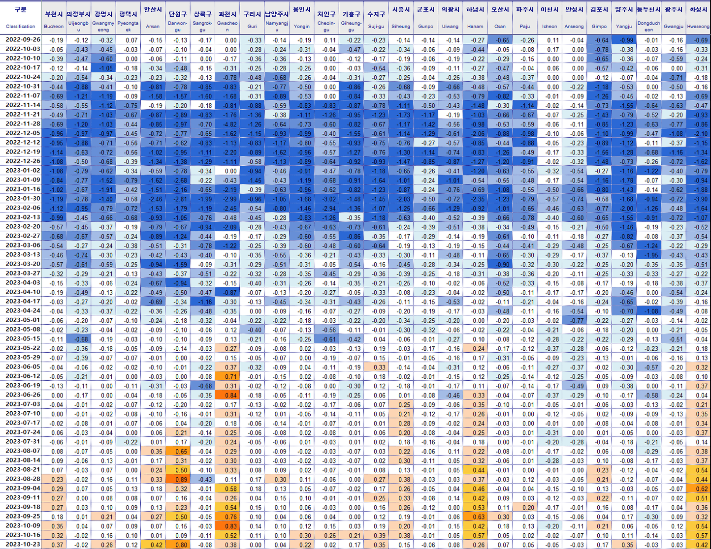 안산 상록구 -0.17% 이천 -0.12%