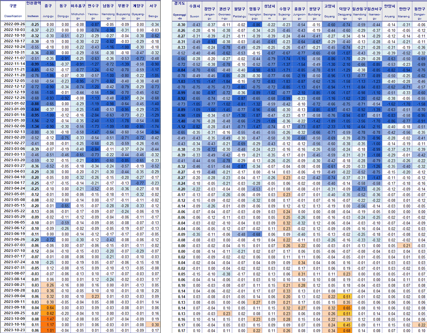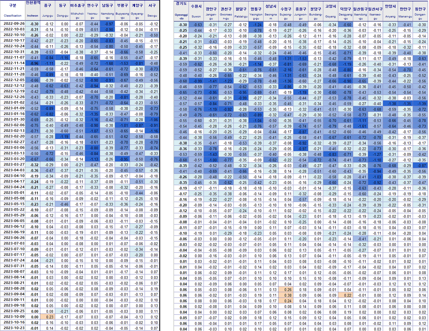인천 계양구 -0.09% 군포 -0.06%