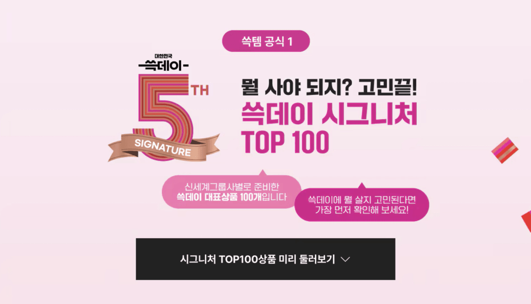 ▶톱 100상품은 SSG닷컴 홈페이지에 공개