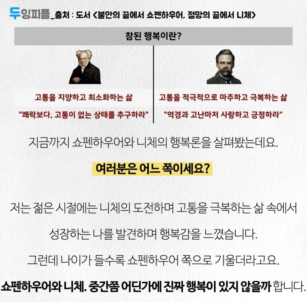 고통이 없는 상태를 추구하느냐 고통을 적극적으로 마주하고 극복하느냐 행복의 정의를 각자마다 두겠지만 결론적으로 멀리있지 않는 건 동일한 것 같네요