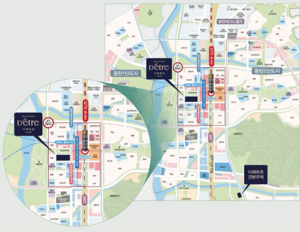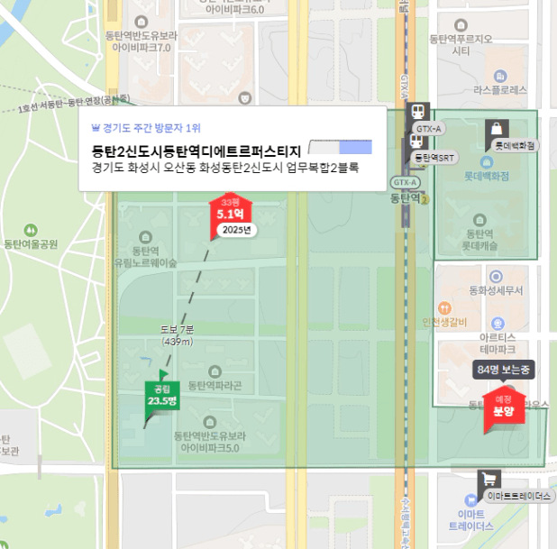 현재 GTX-A 노선이 운행하는 동탄역과는 374m의 거리입니다. 초역세권이네요!