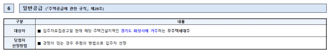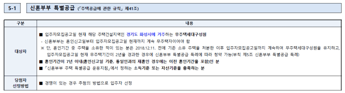 • 일반공급은 세대주만, 신혼부부 특별공급은 세대원도 신청 가능 (화성시 거주 필수)