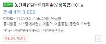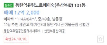 • 유림노르웨이숲의 현재 호가는 12.2억으로 이에 비하면 시세차익 최소 8억 이상이 예상된다.