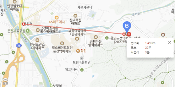 도보로 이용은 불가능해 보이고 버스를 타고 나가거나 자차를 이용해야 출퇴근 가능할 것 같네요.