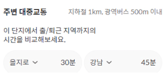강남은 45분이 걸리지만 을지로는 30분에 출퇴근 가능합니다.
