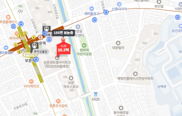 해링턴플레이스안암 주변에 위치한 2026년 입주 예정인 보문센트럴아이파크와 비교해보겠습니다.