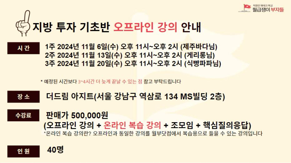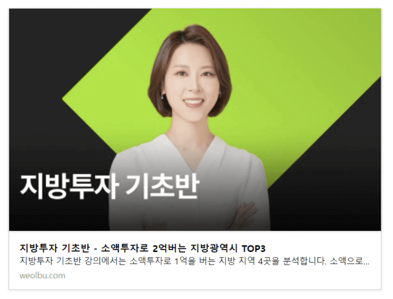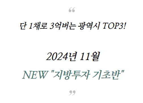 [본공지] "단 1채로 3억버는 광역시! NEW 지방투자기초반" 정규강의 안내 <월부닷컴 선착순>