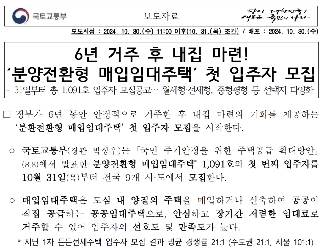 ‘분양전환형 매입임대주택’ 첫 입주자 모집을 시작합니다.