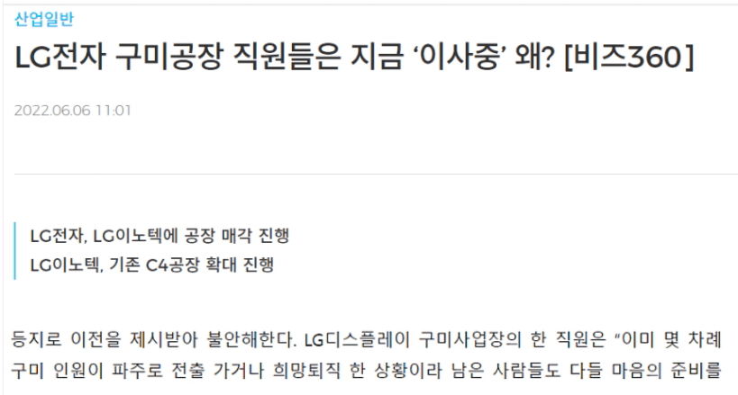 LG 디스플레이 등 대기업 사업장 이동으로