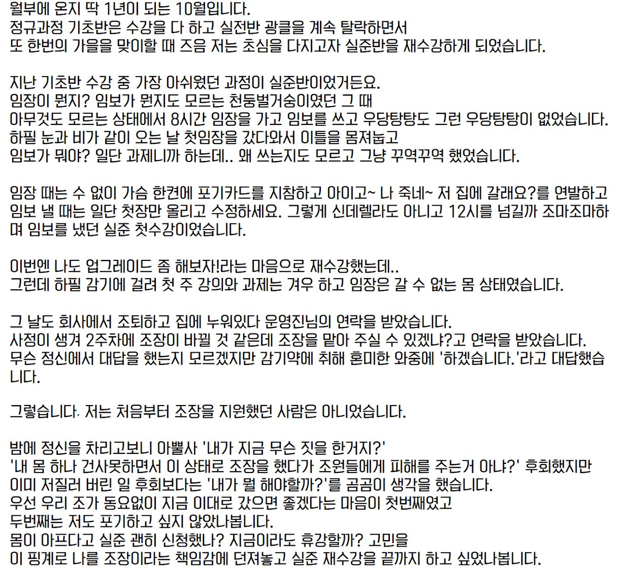이렇게까지 자세한 내용은 몰랐었는데ㅠ 감동적인 글입니다. 중간에 들어오셔서 누구보다 정신없고 힘드셨을텐데 역할 잘해주셔서 너무 감사드립니다!!! 앞으로의 행보도 항상 응원합니다!!!