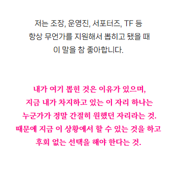 하나하나를 할 때마다 WHY를 정하고 HOW TO를 위해 노력할 것 |