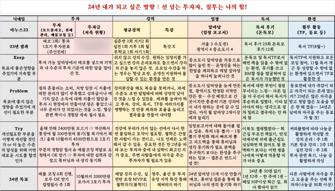 ⭐24년 4분기 목표 🚩 비계량 목표 : 탁월하게 성장하는 월급쟁이 투자자! 그리고 지금이 항상 행복한 투자자! | |