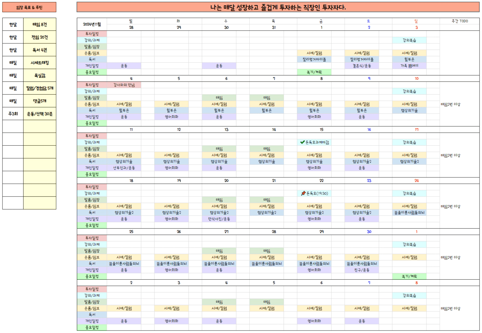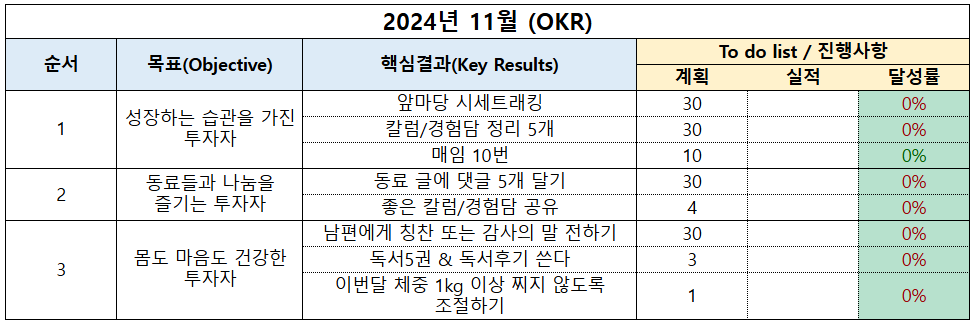 11월은 목표한 것들 잘 챙겨가면서 중간 복기도 꼭 해야겠습니다.