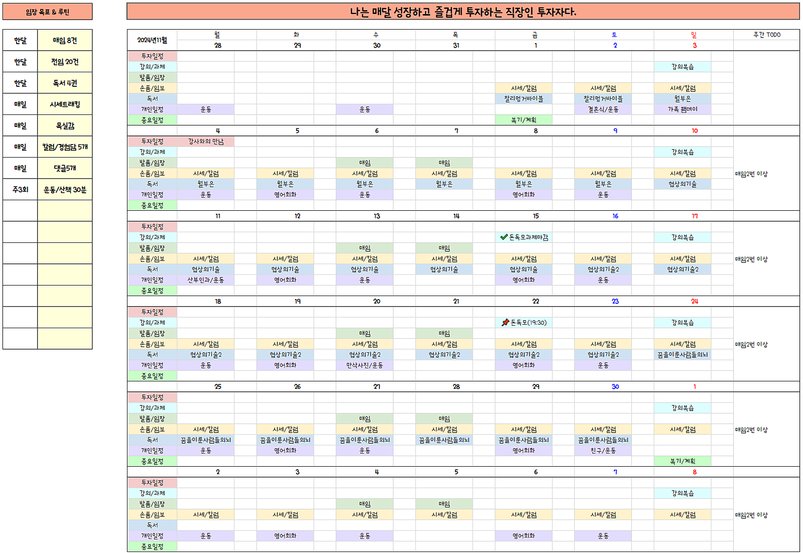 11월은 강의, 임장을 하지 않는지라 그 시간을 시세트래킹, 칼럼/경험담 정리로 채우려 합니다.