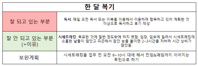 => 아쉬운 점이 있다면 불규칙한 수면 패턴으로 종종 오전 독서루틴이 깨진 것