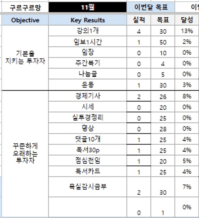 투자시간이 지난달보다 25시간정도 늘어났다.
