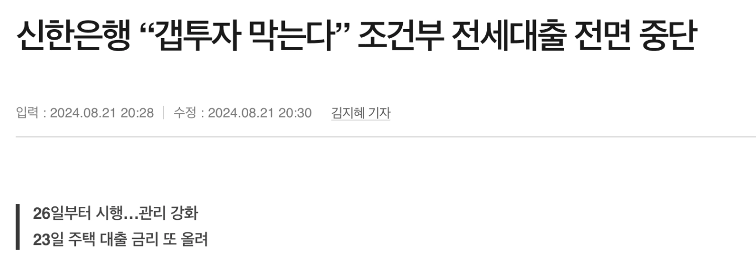 남편이 저를 막아선 이유는 "조건부 전세대출 중단" 이었습니다.