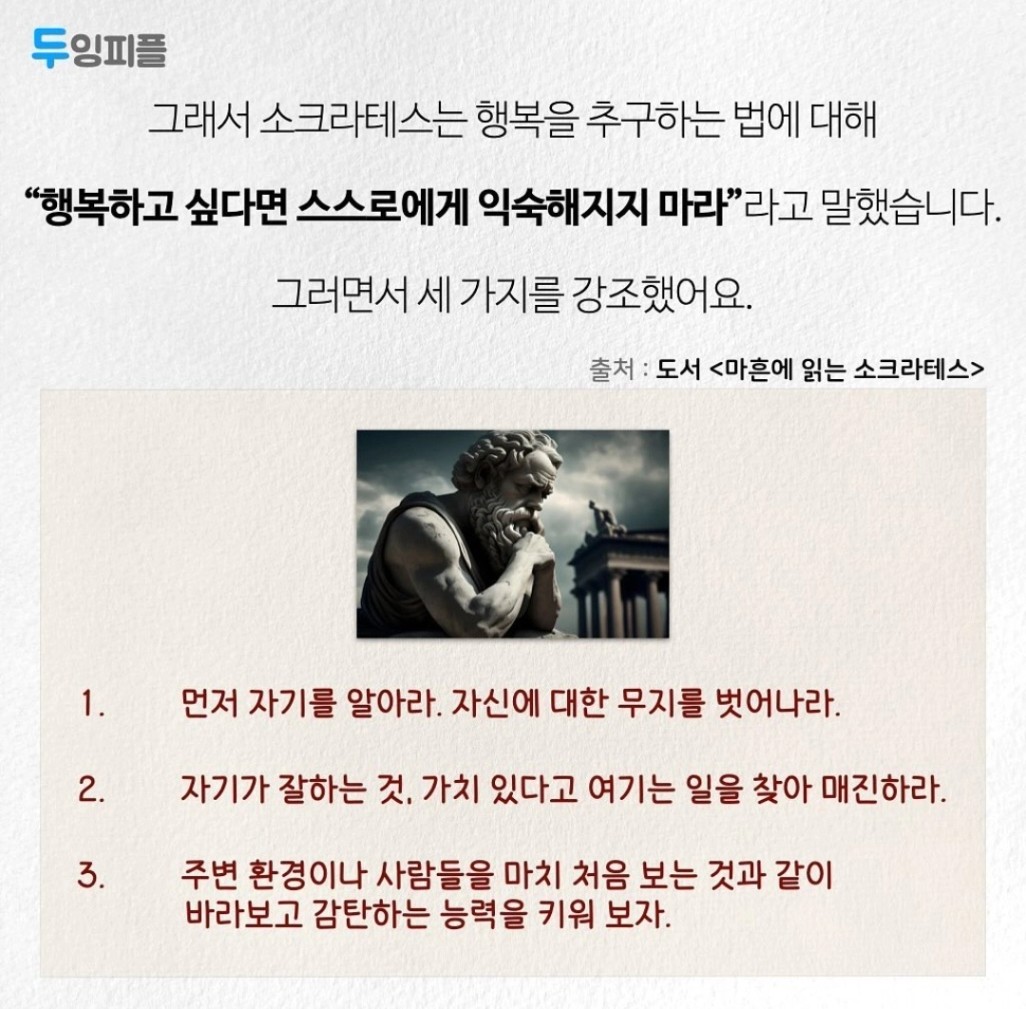 행복해지고싶다면스스로에게 익숙해지지말라 명언이네요~~^^ 오늘도 익숙하지않은 삶을위해 홧팅 태싸님 감사합니다