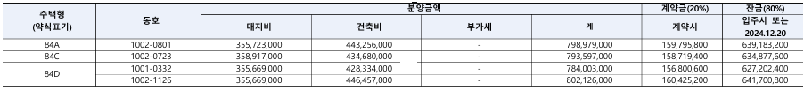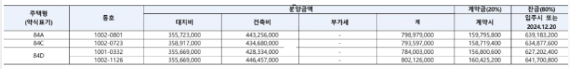 일정, 조건, 시세차익 등