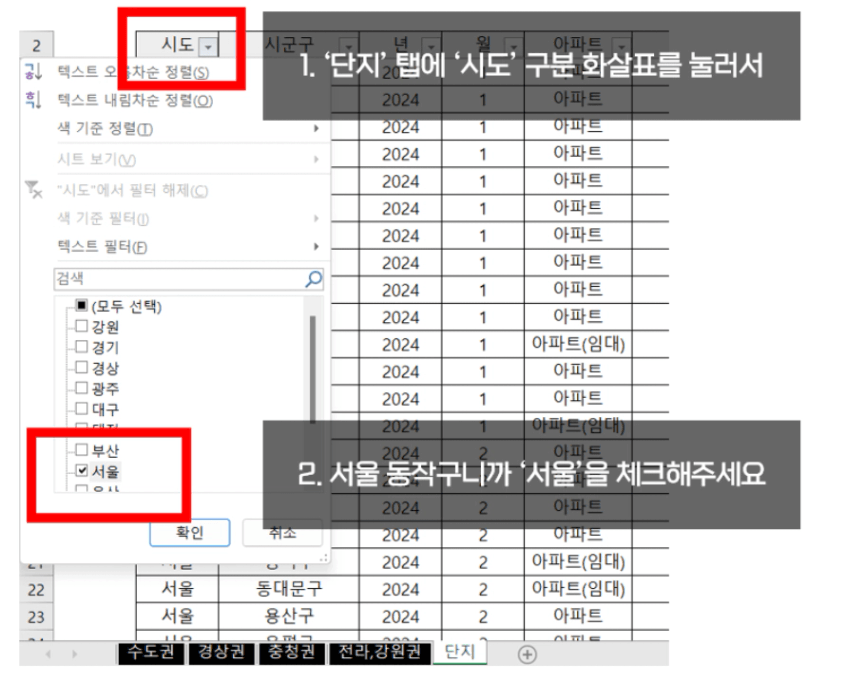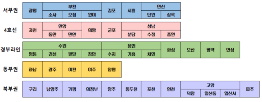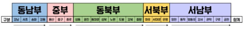서울은 25구를 지역별로 다른 색깔로 표하고