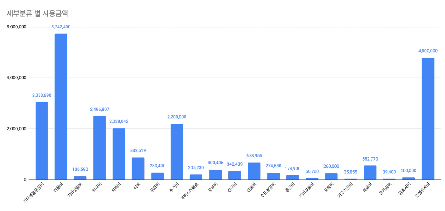 입사후 9월까지 어디다 썼는지 분석해봤는데