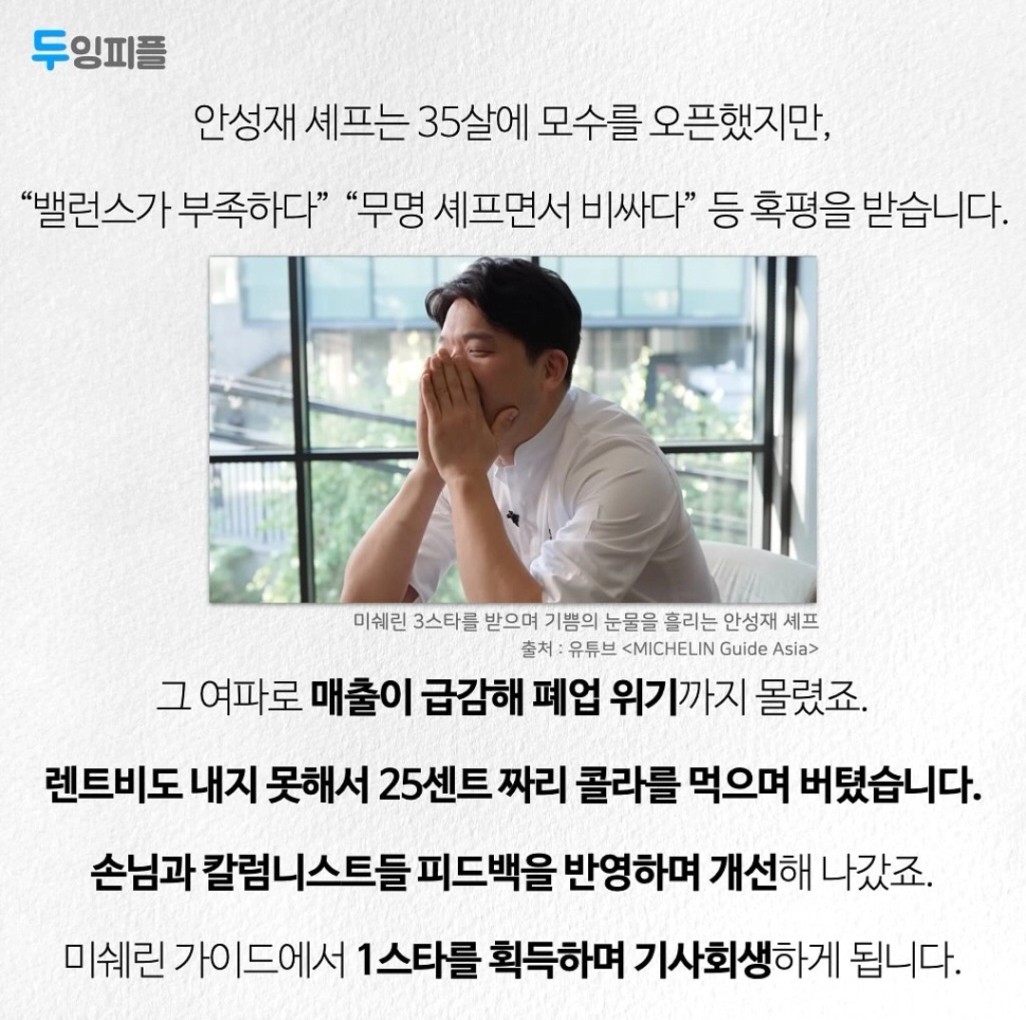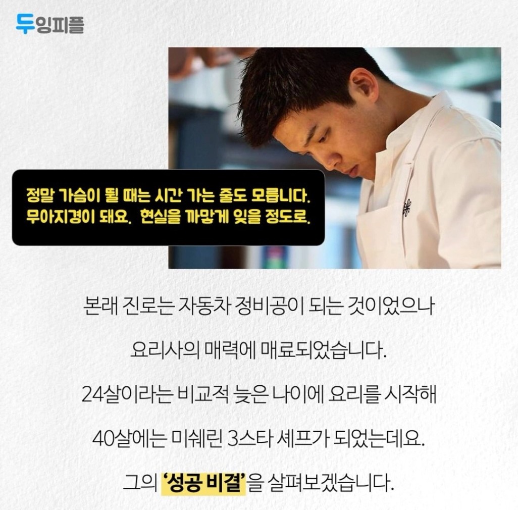 몰입했던 시기가 있기 때문에 현재 미쉐린 3스타 쉐프가 되지 않았나 생각이 드네요