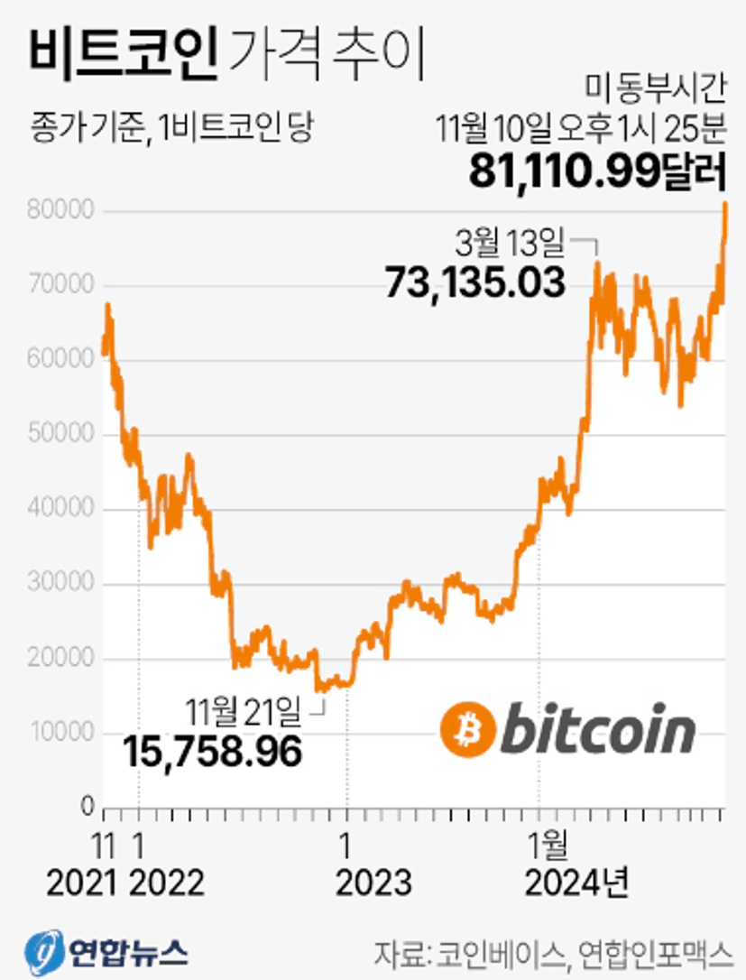 비트코인 사상 첫 8만 달러 돌파 (미국, 트럼프, 전망)
