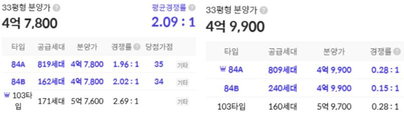 평택지제역에 가까운 신축의 경쟁률을 봤는데