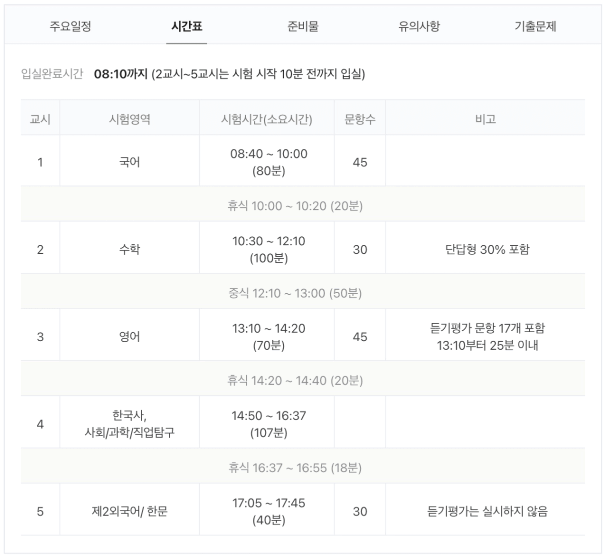 1.2025학년도 수능 시간표